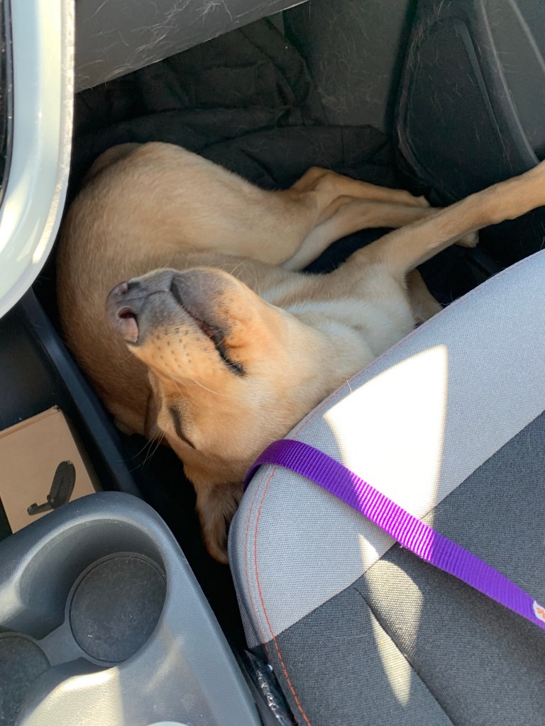 So into the crate went Miss M (whad I do? Whad I do?) and off to urgent care went we.