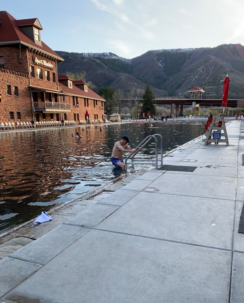 The Glenwood Springs Hot Spa Resort proudly announces it’s the world’s largest hot springs pool, with 1,087,000 gallons. There are at least that many black flies doing the back stroke in the water. If you’re wiggy about having to sweep flies away from you in the water (doing the breast stroke is good) this is NOT the pool for you.