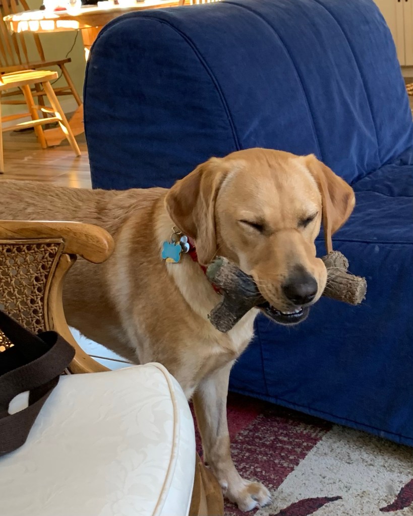 Dog, from the corner of her mouth: stop it MaeMae I’m working