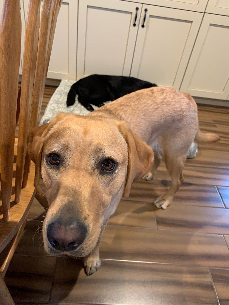 We hosted another guide dog puppy in training for the night; her raisers had kindly had Miss M last weekend. When they had plans for Friday evening, we were happy to have their pup, a beautiful, petite black lab.
