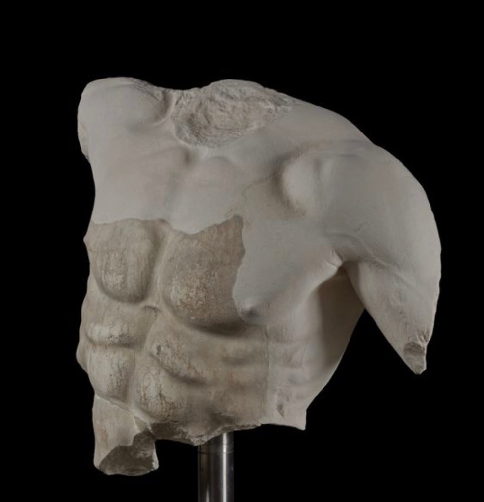 The statue of Poseidon, at the middle of the central frieze, took one for the team and swan dived off the roof. Elgin’s bunch found the torso in the debris, minus it’s chest/stomach and figured eh, throw it in.