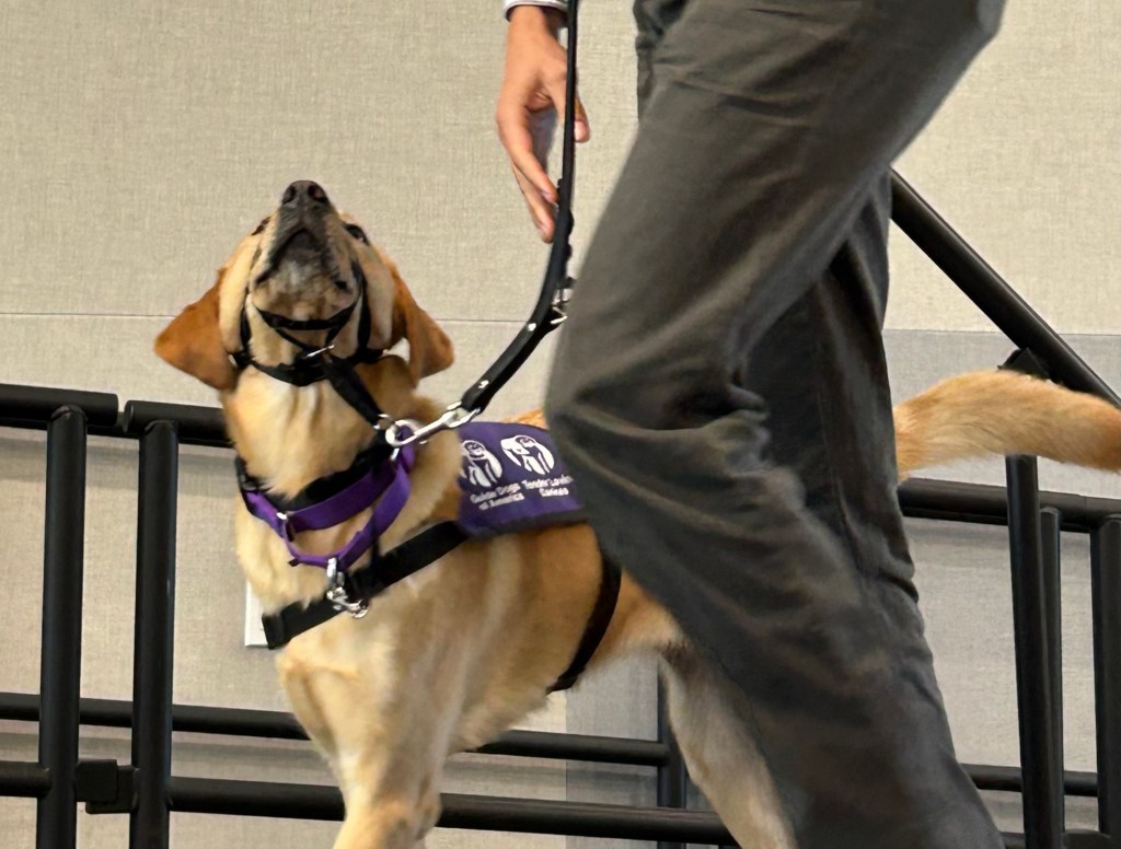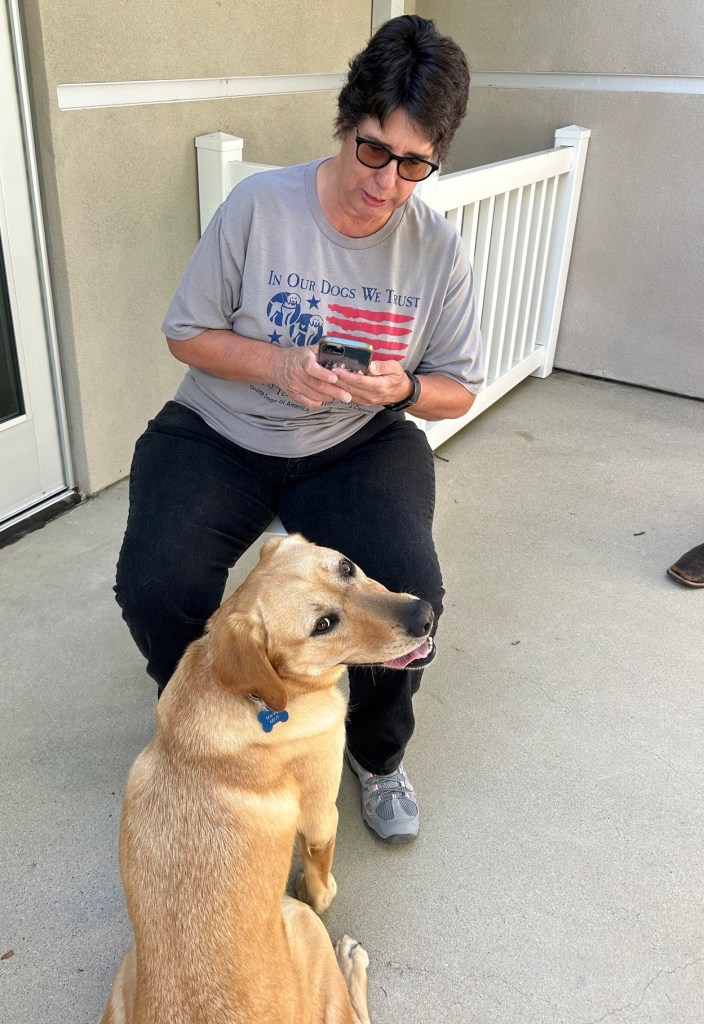 We got to the Guide Dogs of America campus early, as instructed, so we’d have time to reconnect with our first attempt at puppy raising and her new owner.
