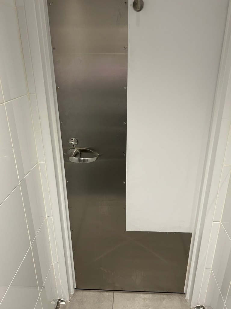 The outside of the stalls are equally… functional. Whatever. It was clean, and I sure didn’t linger in my little bunker. Although, maybe that was the idea.