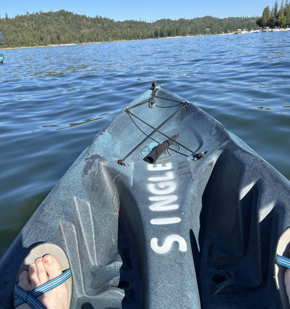 We went kayaking on Bass Lake, just outside Yosemite, Beloved and I, during our weekend vacation.