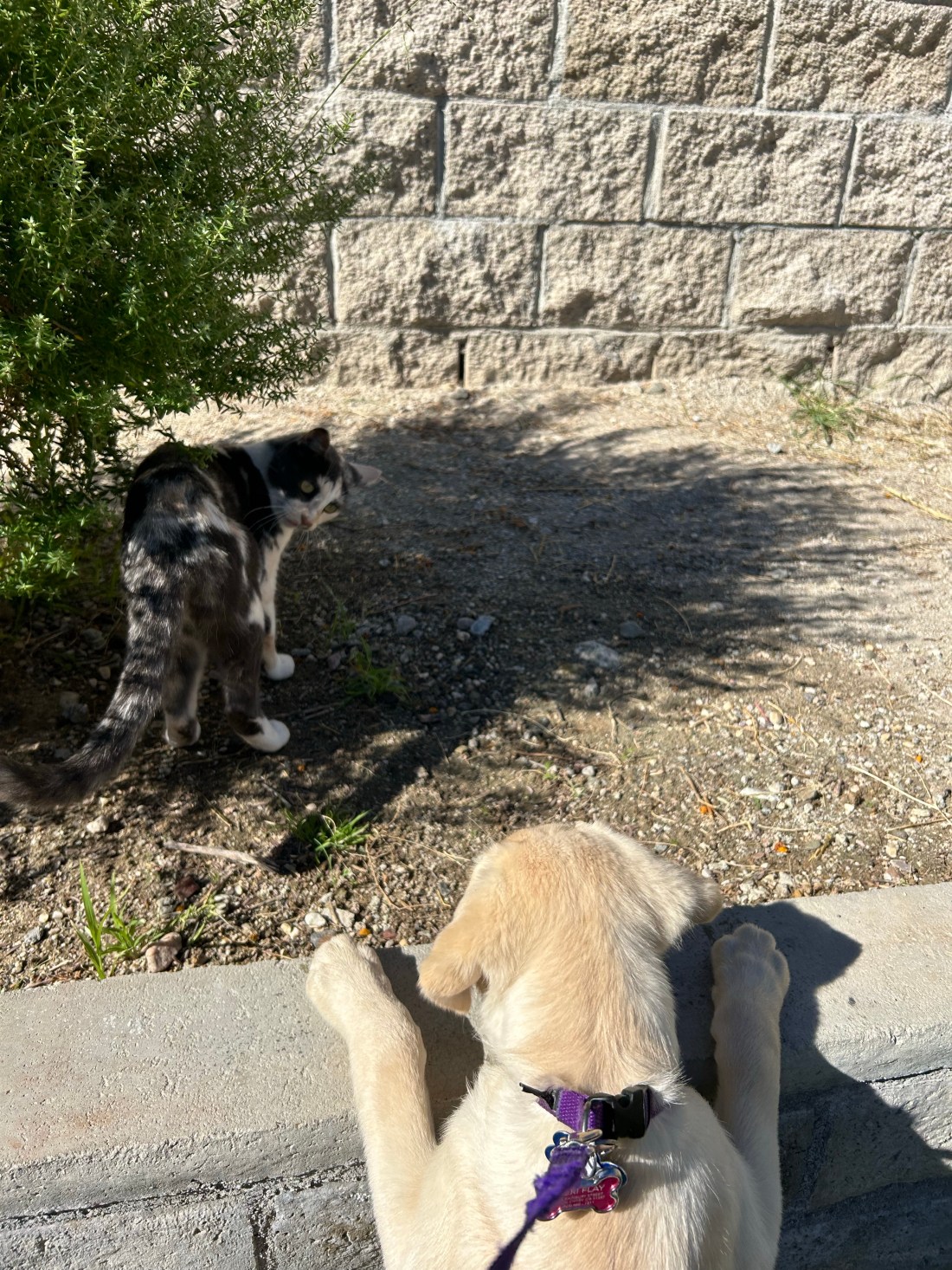 MaeMae (the cat) walked up to the crappy little fence that prevents the dog from leaping onto the back bank as we were out there burning off some energy. As I’ve said before, this “fence” has the tensile strength of dollar store gift wrap. More accurately, the dog burns off energy... I just get more … Continue reading “Come here,” commanded the cat.