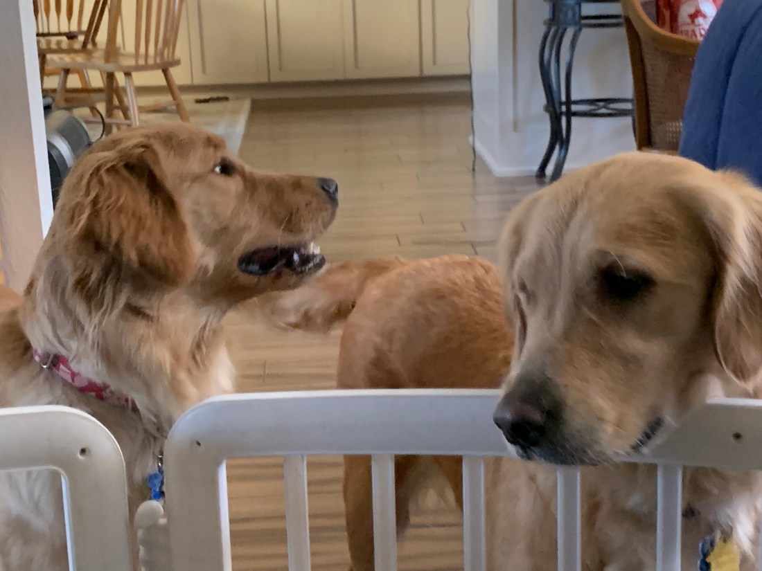 Granny (my mom) was taking the dregs of her morning coffee to water the camellias, so she opened the front door, shooing the visiting dogs out of the way. You gotta understand, my mom is tiny. Granny and the pup Our golden retriever visitors are not. One guide dog puppy and one breeder mama dog. … Continue reading “Outta my WAAAAAAAAY!” Screamed the puppy.