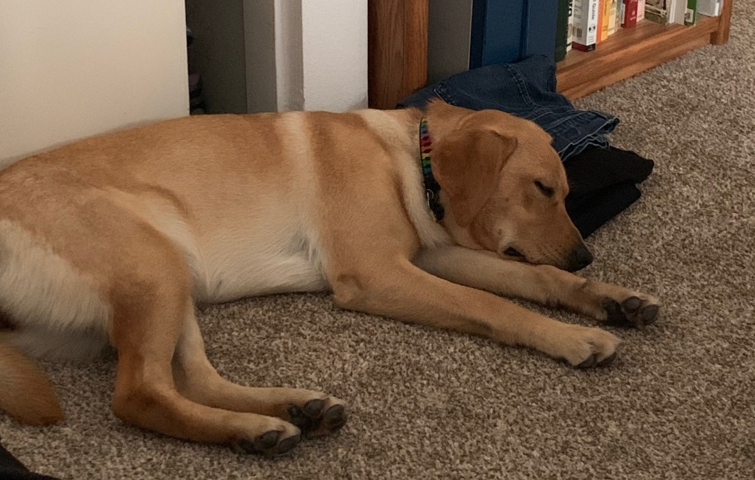 Unfortunately, she did this just as I rounded the corner and catapulted away from me as we collided. Skidding, she regained her balance, shot under the table, grabbed something in her mouth and galloped to her bed in the corner. What the hell? So when I give her a “peanut butter ball-y” (a Kong filled … Continue reading The dog sprinted out of the kitchen like a marine under fire: furtive, low to the ground and moving at high speed.